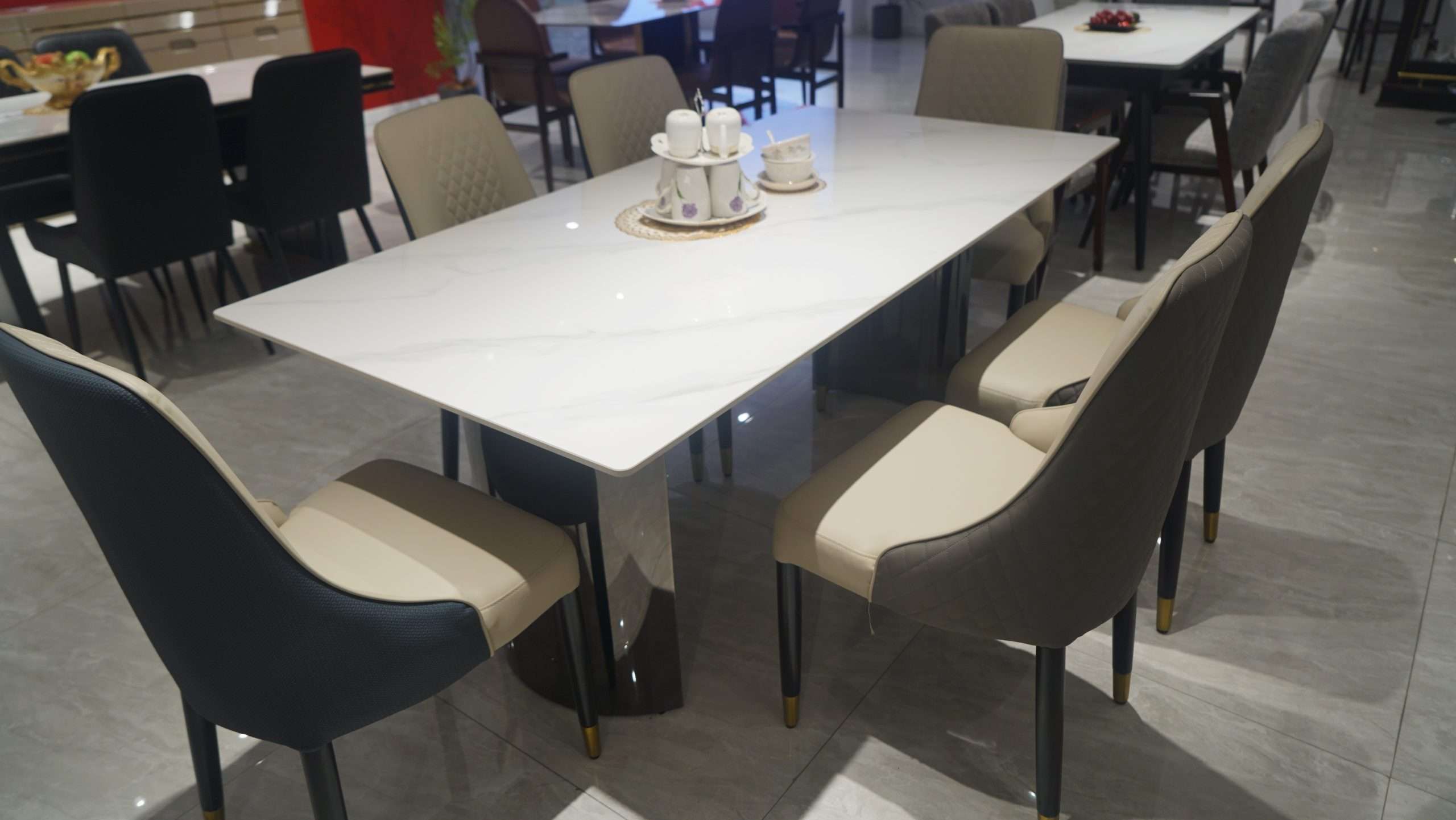 The Dining Table (DTM052-18) table boasts a durable stone top, while the exquisite table legs add style to any dining space. Minimalist design style combined with modern home art, interpreting art and home concepts. The Marble tabletop shows the natural beauty and elegance of this high-end natural stone, creating a beautiful environment for any home space.